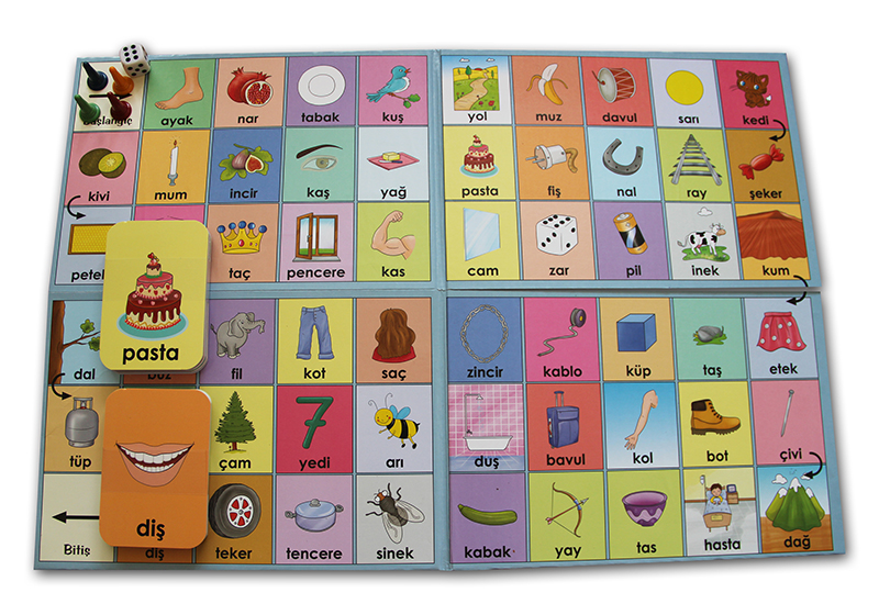- Oyun kartonun üzerinde hedef sözcüklere uygun resimler vardır. Oyun başlamadan önce oyuncular birer piyon alır. En büyük yarışmacı oyuna başlar ve zarı atar. Zardaki sayı kadar ok yönünde resimlerin üzerinde ilerler. Durduğu resme uygun (sözcük sonu aynı olan) diğer resmi bulup piyonu onun üzerine koyar. Diğer oyuncular da sıralı bir şekilde oyunu devam ettirirler. Bitiş noktasına önce gelen oyunu kazanır.